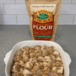 Make the Dough· In a large bowl stir together the dry ingredients· Cut cold butter into cubes and use a fork to mix butter into dry mixture, until it forms pea size pieces· Stir in the milk slowly until you can form a doughball with your hands Prepare Dough Balls· In a small bowl add sugar, cinnamon and butter and mix to combine· Butter the bottom of a 9x9 baking dish· Roll the dough into equal 1-inch balls and line the baking dish with them· Top the dough balls with cinnamon butter mixture Bake the Cinnamon Bites· Preheat oven to 350 degrees F· Bake for 20-25 minutes· Make the glaze topping by combining the sugar, milk and vanilla in a small bowl· Remove the Cinnamon Bites from the oven and drizzle with vanilla glaze Enjoy!